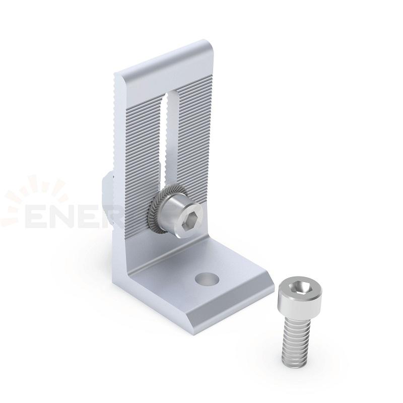 El diseño único de las abrazaderas intermedias y finales se utiliza para módulos solares de 30 a 40 mm de espesor. Su diseño, que incluye especificaciones importantes, ahorra costos de inventario y es rápido y fácil de instalar. El diseño innovador de la base-soporte con conexión de riel aumenta eficazmente la resistencia del producto y garantiza la seguridad de su uso. Enerack ofrece una amplia variedad de soportes para techos de hojalata que ofrecen opciones a los clientes. Se pueden personalizar según las necesidades del cliente para satisfacer requisitos de instalación específicos.